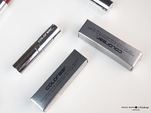 The Colorbar Diamond Shine Lipsticks are packaged in a matte silver box which consists of all the necessary details. The lipstick itself comes in a metallic silver packaging, just like the other Colorbar products. The cap shuts with a click, hence it is less likely to open in your handbag, making it travel friendly. The shade name is mentioned on the bottom of the lipstick which makes identification of a particular color much easier.