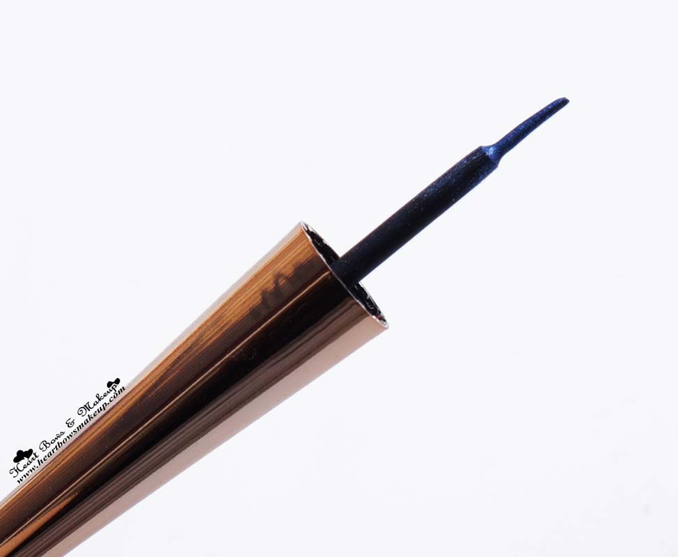 Lakme Shimmer Liner comes in tiny plastic bottle with a gold metallic cap. You can easily make out the color incase you own more than one of these. With eye liner my main concern is the brush. No matter how good the product might be but if the applicator isn’t any good then I barely end up using it. The Lakme Shimmer Liner has a fine tip which is stiff yet flexible enough to draw the thinnest of lines cleanly. Lakme sure does a great job with with its liners and their applicators!